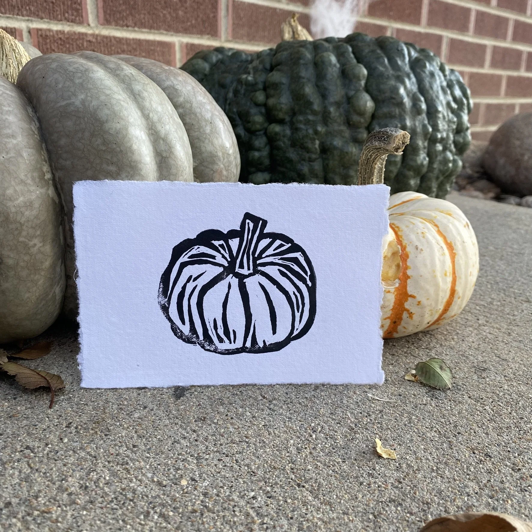 Categories: All Art Prints Greeting Cards Clay Beaded Bracelets All / Hand-Carved Pumpkin Stamp Print on Handmade Paper $8.00 Add To Cart Added!
