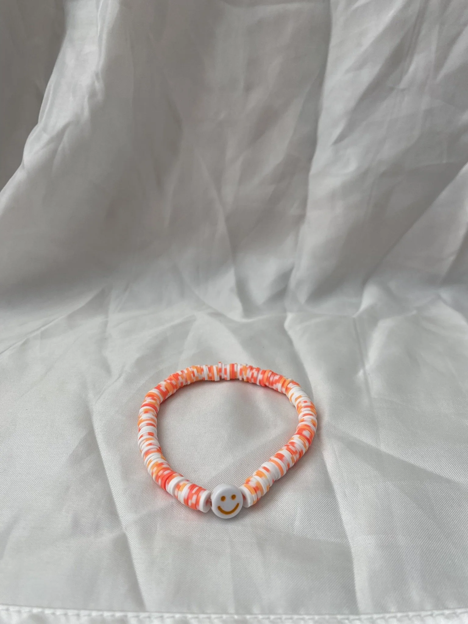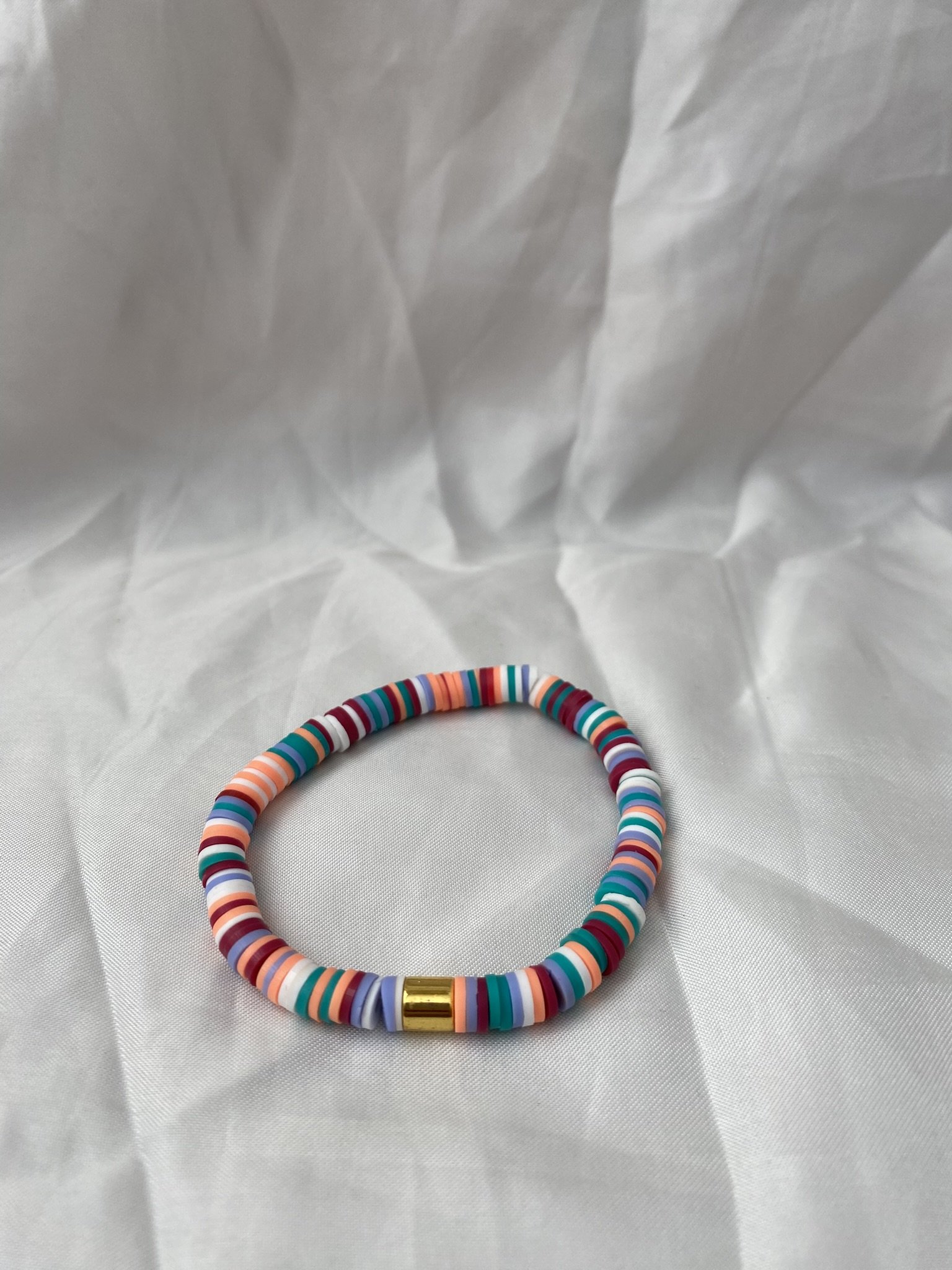Polymer clay beaded bracelet with gold accent charm! “Cloudy Grey.” Fun to add to your bracelet stack or wear alone. These make wonderful party gifts, stocking-stuffers, and presents!