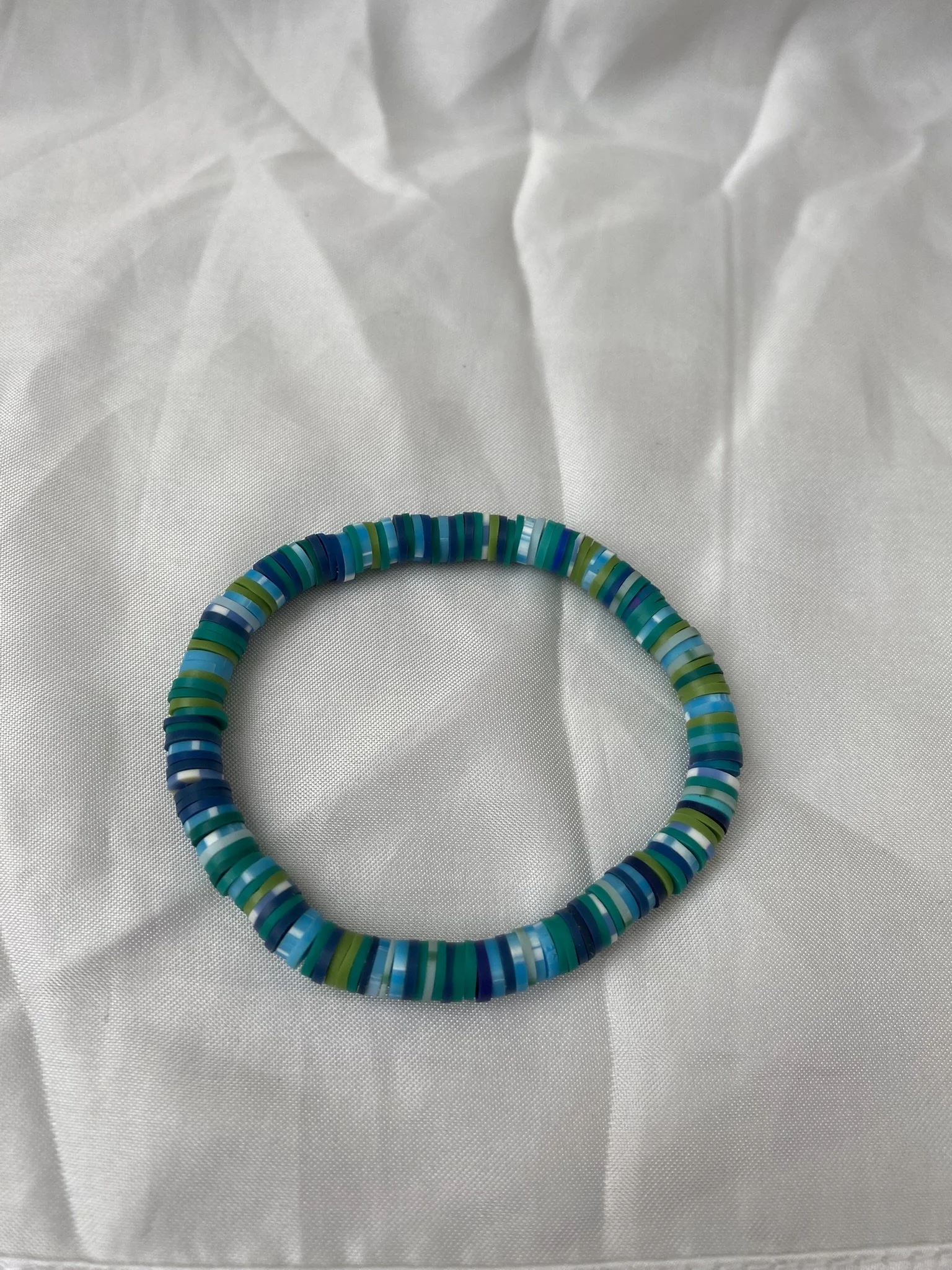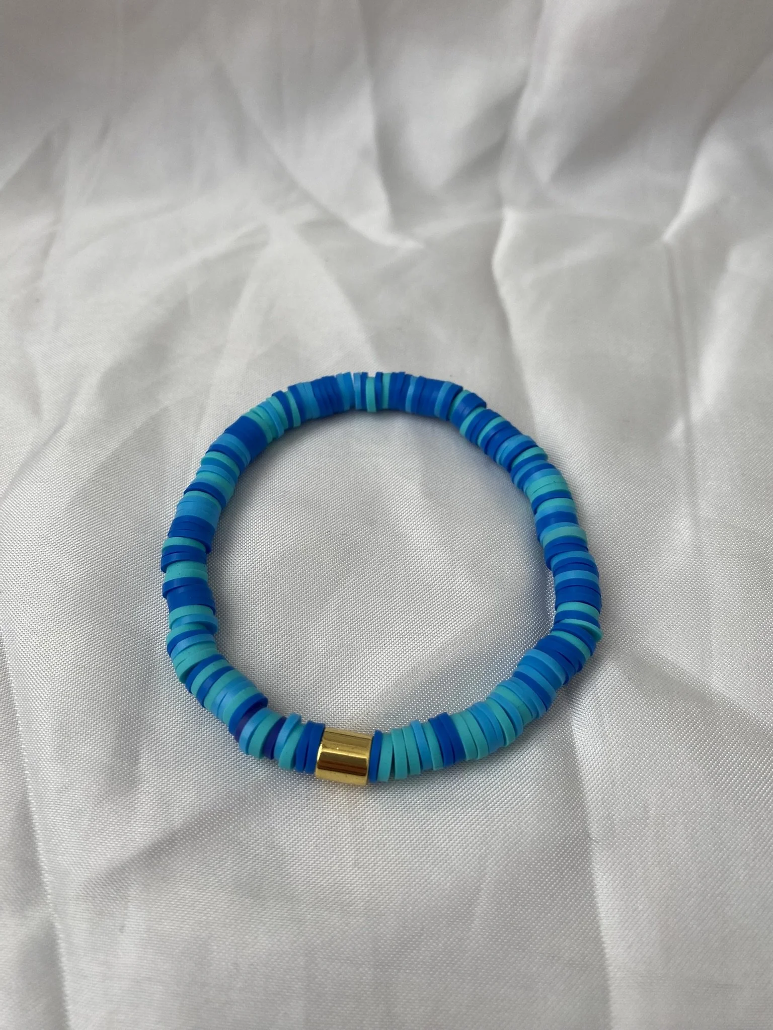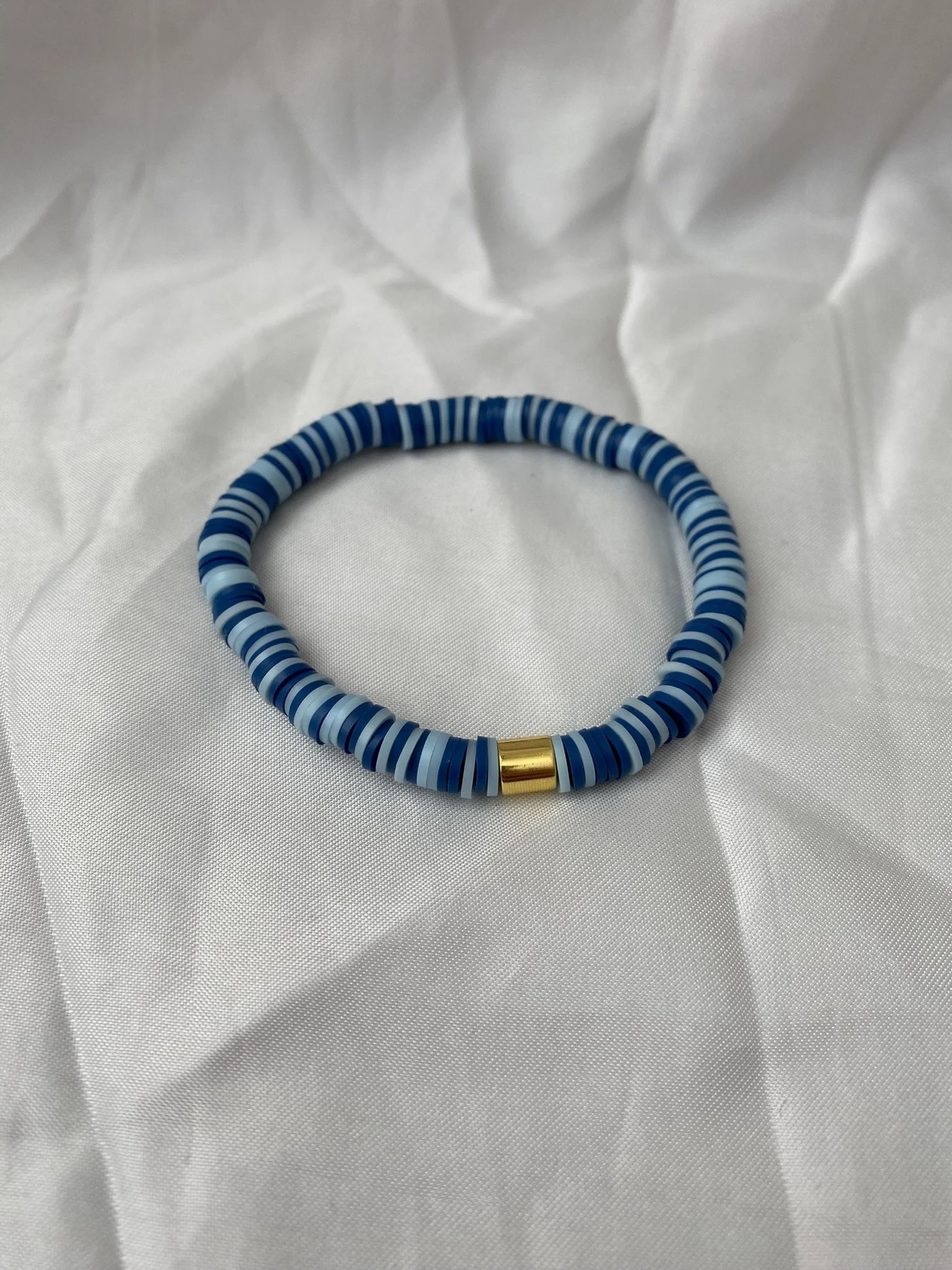Polymer clay beaded bracelet with gold plated accent charm. “Cloudy Sky”. Fun to add to your bracelet stack or wear alone. These make wonderful party gifts, stocking-stuffers, and presents! 15% of each purchase is donated to the Colorado Youth Athletic Foundation. Thank you :)