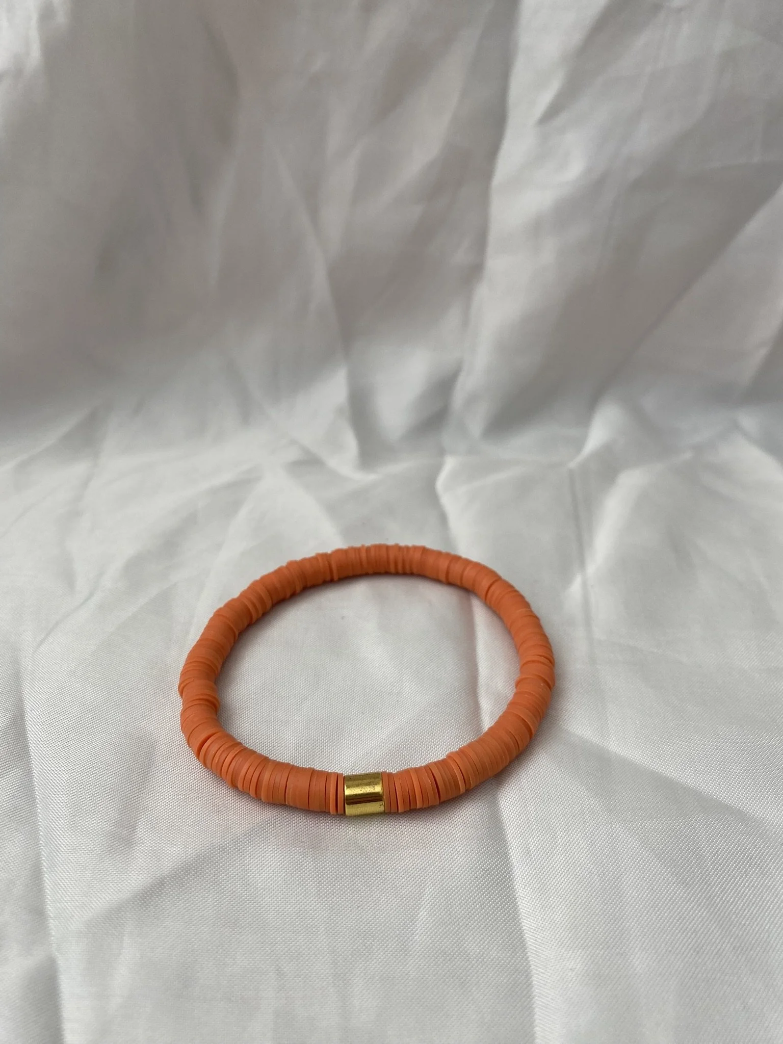 Polymer clay beaded bracelet with gold accent charm! “Desert Sand Striped”. Fun to add to your bracelet stack or wear alone. These make wonderful party gifts, stocking-stuffers, and presents! 15% of each purchase is donated to the Colorado Youth Athletic Foundation. Thank you :)