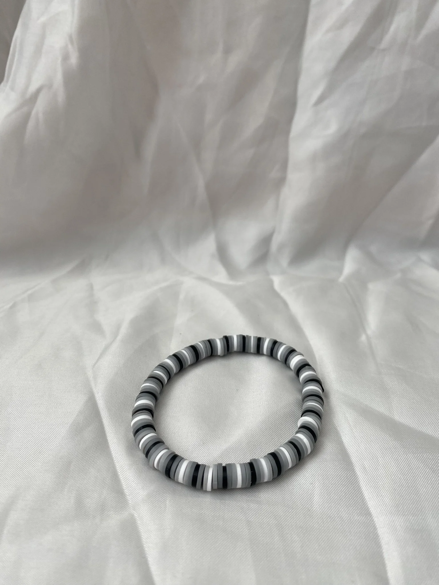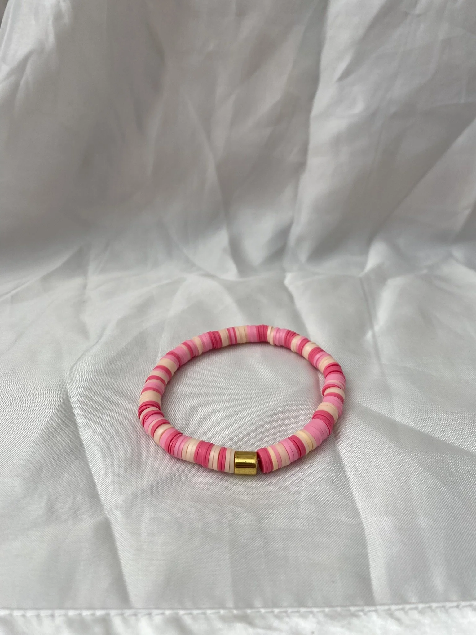 Polymer clay beaded bracelet! “Neon Pink Striped.” Fun to add to your bracelet stack or wear alone. These make wonderful party gifts, stocking-stuffers, and presents!