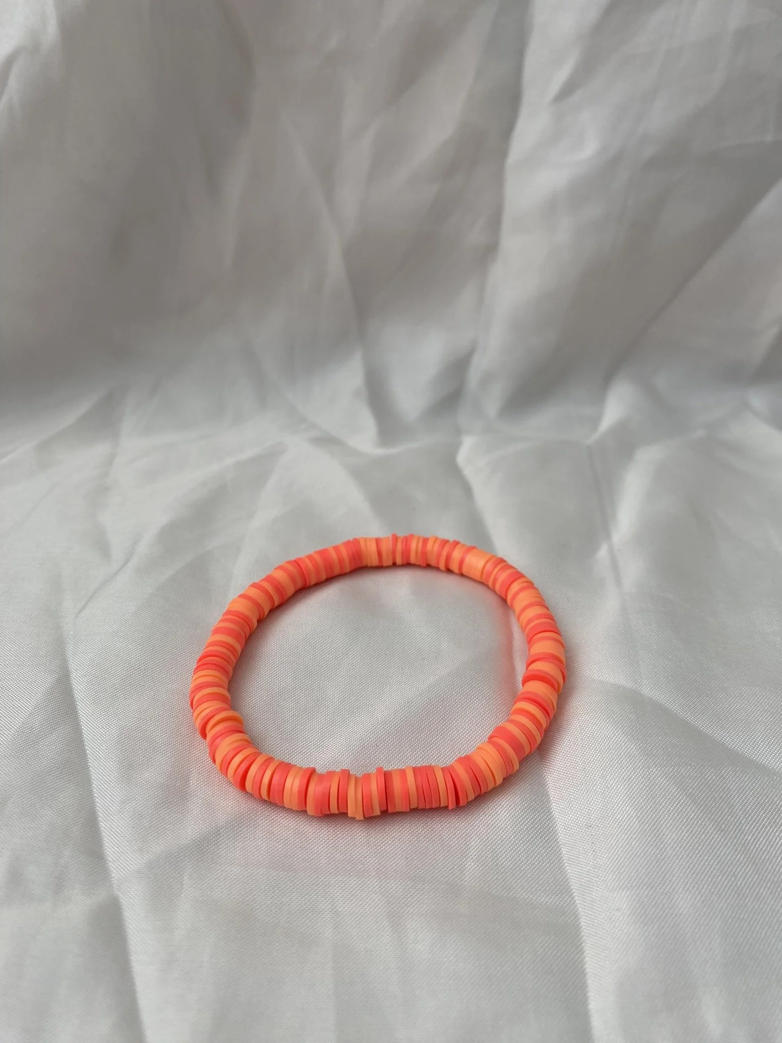 Polymer clay beaded bracelet! “Pink Shades Stiped”. Fun to add to your bracelet stack or wear alone. These make wonderful party gifts, stocking-stuffers, and presents!